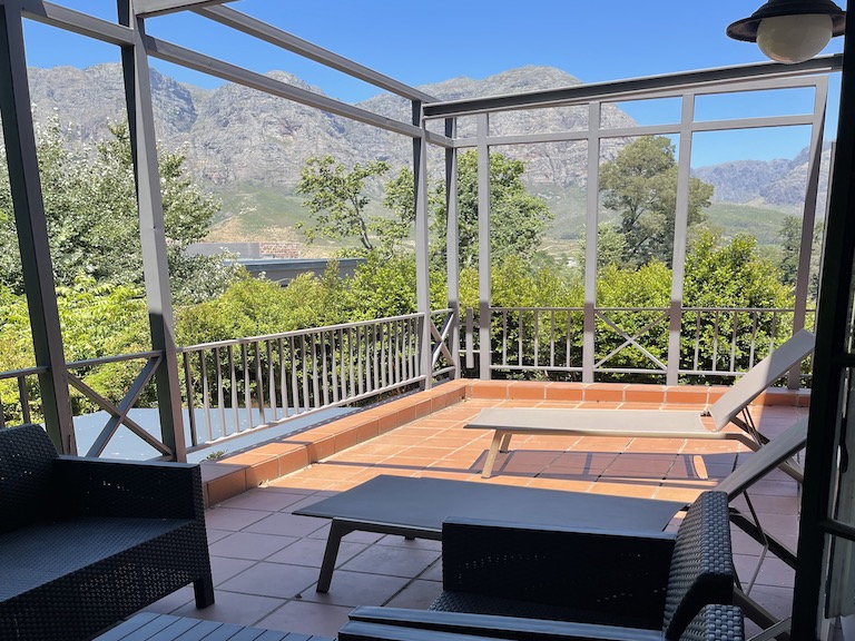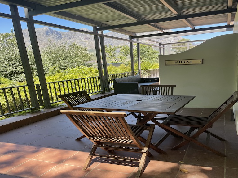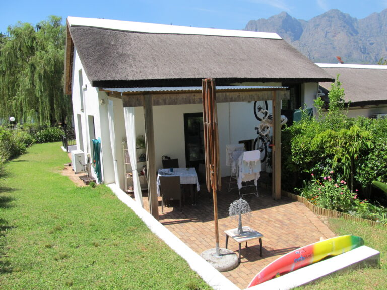 One of our first homes on the property is an old style Dutch thatched roof with a mountain view.