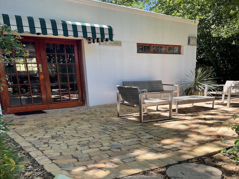 Jacaranda is a modern, open planned studio apartment with a patio situated under a gorgeous Oak tree.